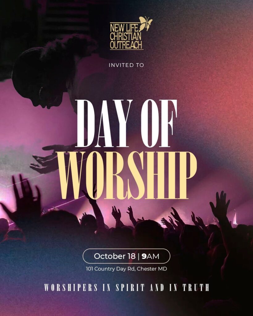 Full day of praise and worship at New Life Christian Outreach on Saturday, October 18th starting at 9am. Come and bask in the presence of God and worship his holy name. Many church worship groups will be performing.